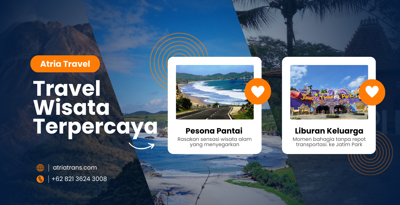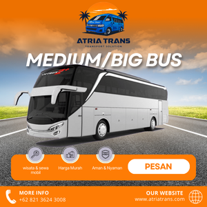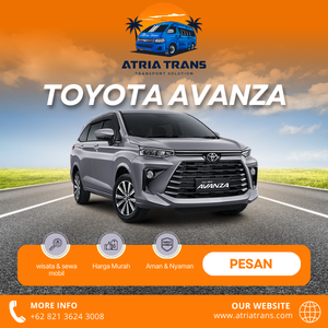 Didukung pilihan armada Sigra, Avanza, Innova, Elf, Hiace, Medium Bus, dan Big Bus, ATRIA TRANS siap menyesuaikan kebutuhan perjalanan Anda. Informasi dan pemesanan dapat dilakukan dengan mudah melalui WhatsApp . Ikuti juga aktivitas dan update kami melalui Instagram @atriatrans, Facebook Saputra Liga, dan TikTok @MENTRI PARIWISATA.